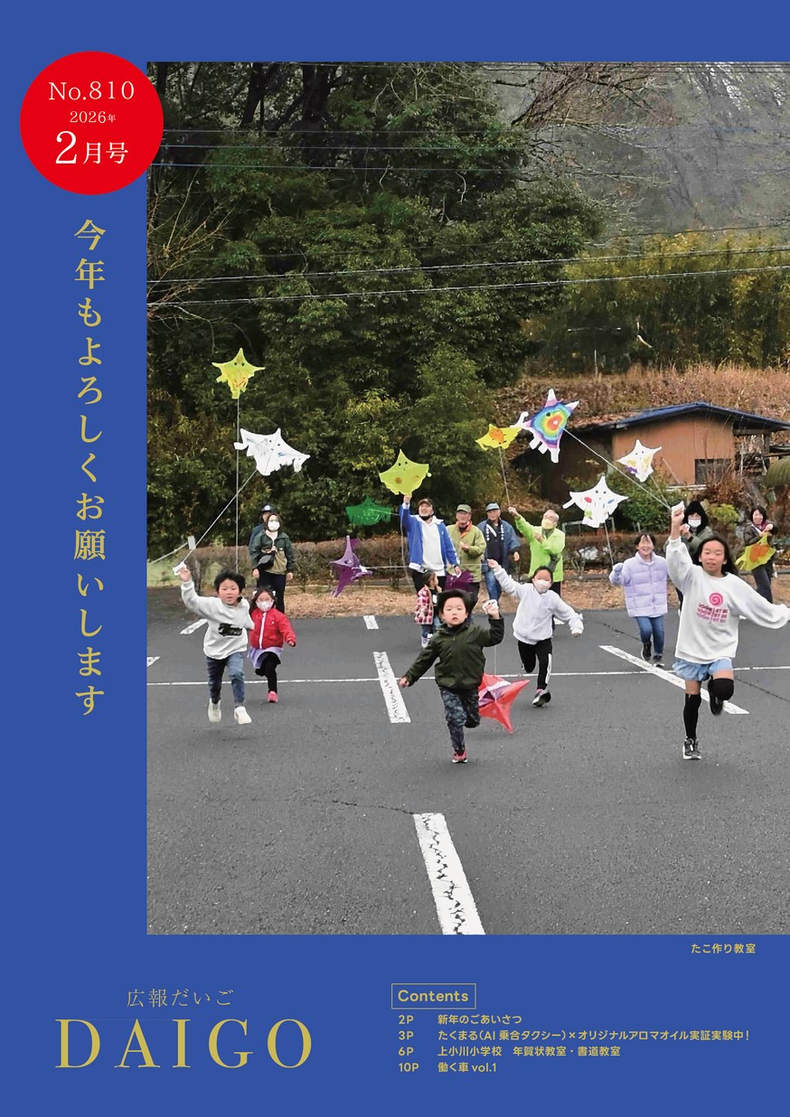 表紙 謹賀新年(たこ作り教室) 特集 働く車 ・新年のごあいさつ ・大子まちなかビジョン ・秋の叙勲 伝達式 ・ニュース