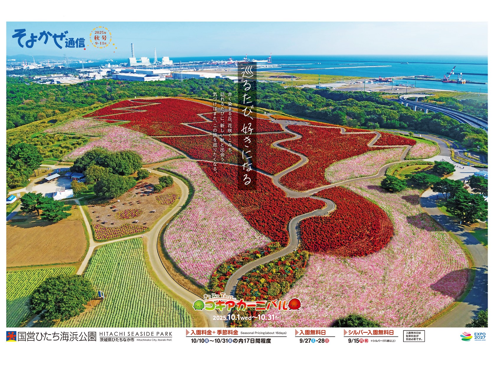 表紙 それぞれの絶景 特集 きて みて さわって コキアカーニバル ・みはらしの丘のコキア4万本へ!! ・この秋見たいコスモ