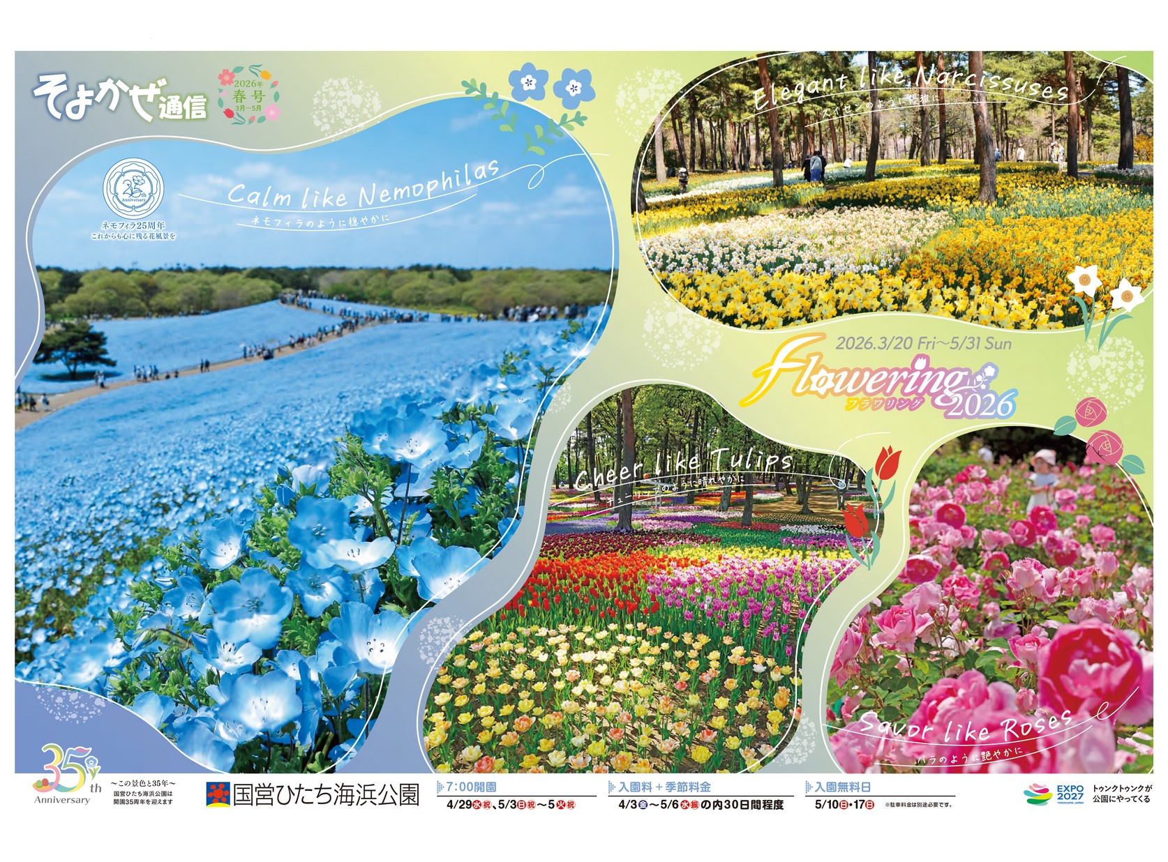 表紙 flowering2025 ・森の広場 ・Flower ・Nature ・Sports ・Culture ・ネモ