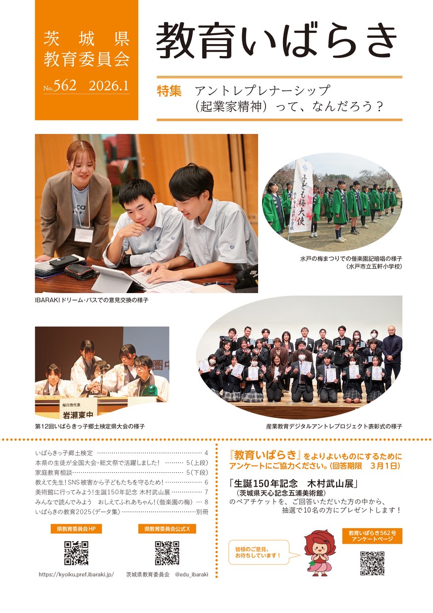 特集 アントレプレナーシップ(起業家精神)って、なんだろう? ・いばらきっ子郷土検定 ・いばらきの教育2025 ・本県の生徒