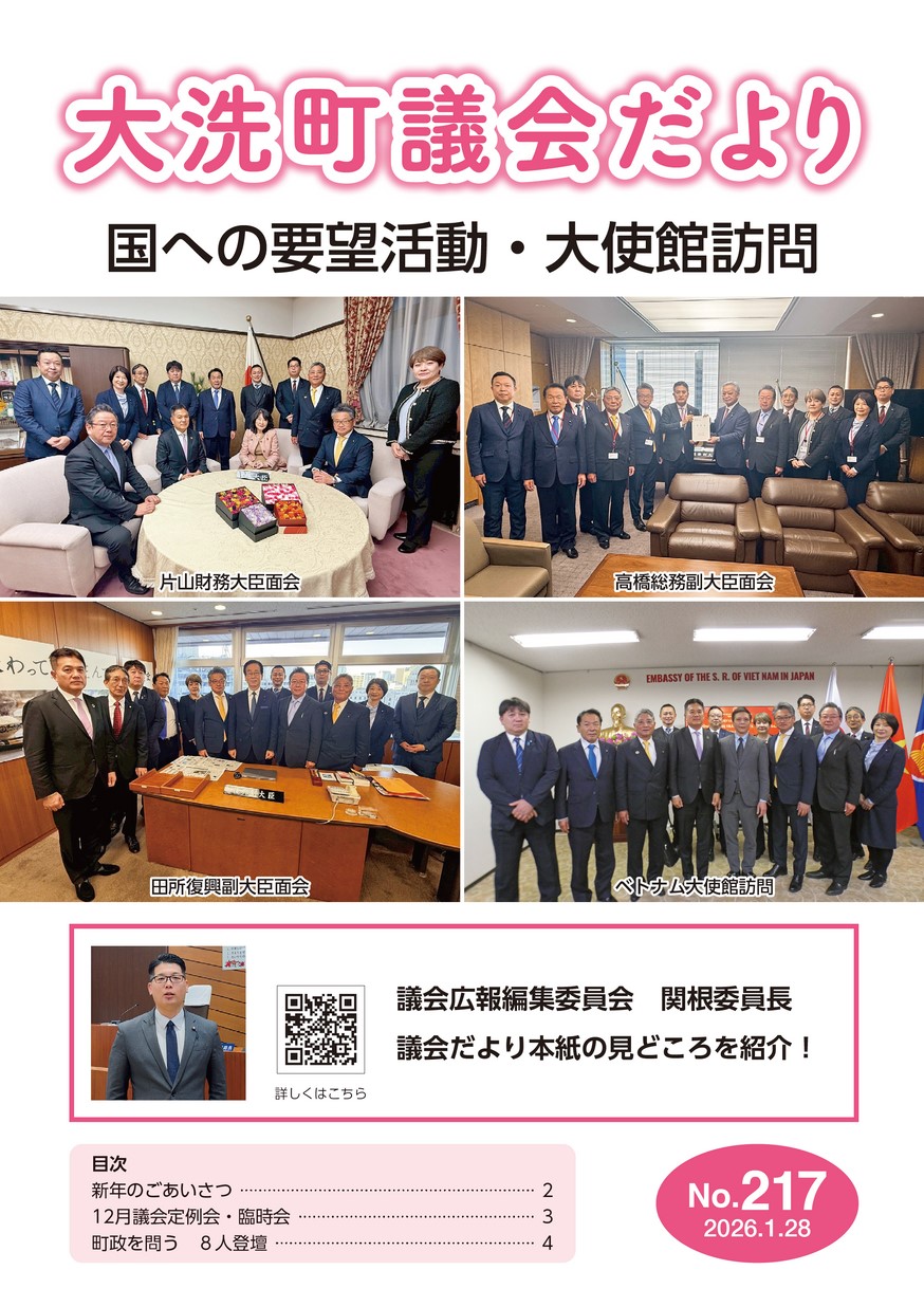 表紙 国への要望活動・大使館訪問 ・新年のごあいさつ ・12月議会定例会・臨時会 ・ズバリ!町政を問う ・議会活動 ・令