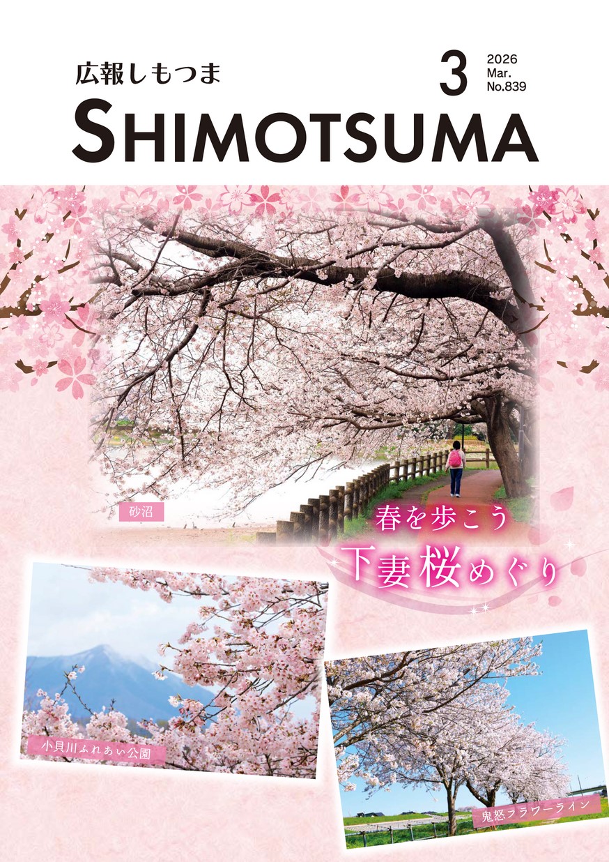 表紙 春を歩こう 下妻桜めぐり ・もっと自由に、もっと充実へ 部活動改革 ・ごみの減量・分別・リサイクルにご協力を!! ・大