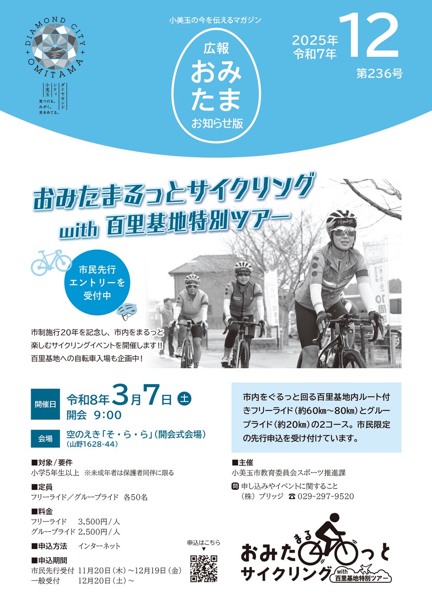 表紙 おみたまるっとサイクリング with 百里基地特別ツアー ・みんなで歩こう!新春歩け歩け大会 ・整骨院・接骨院(柔道整復