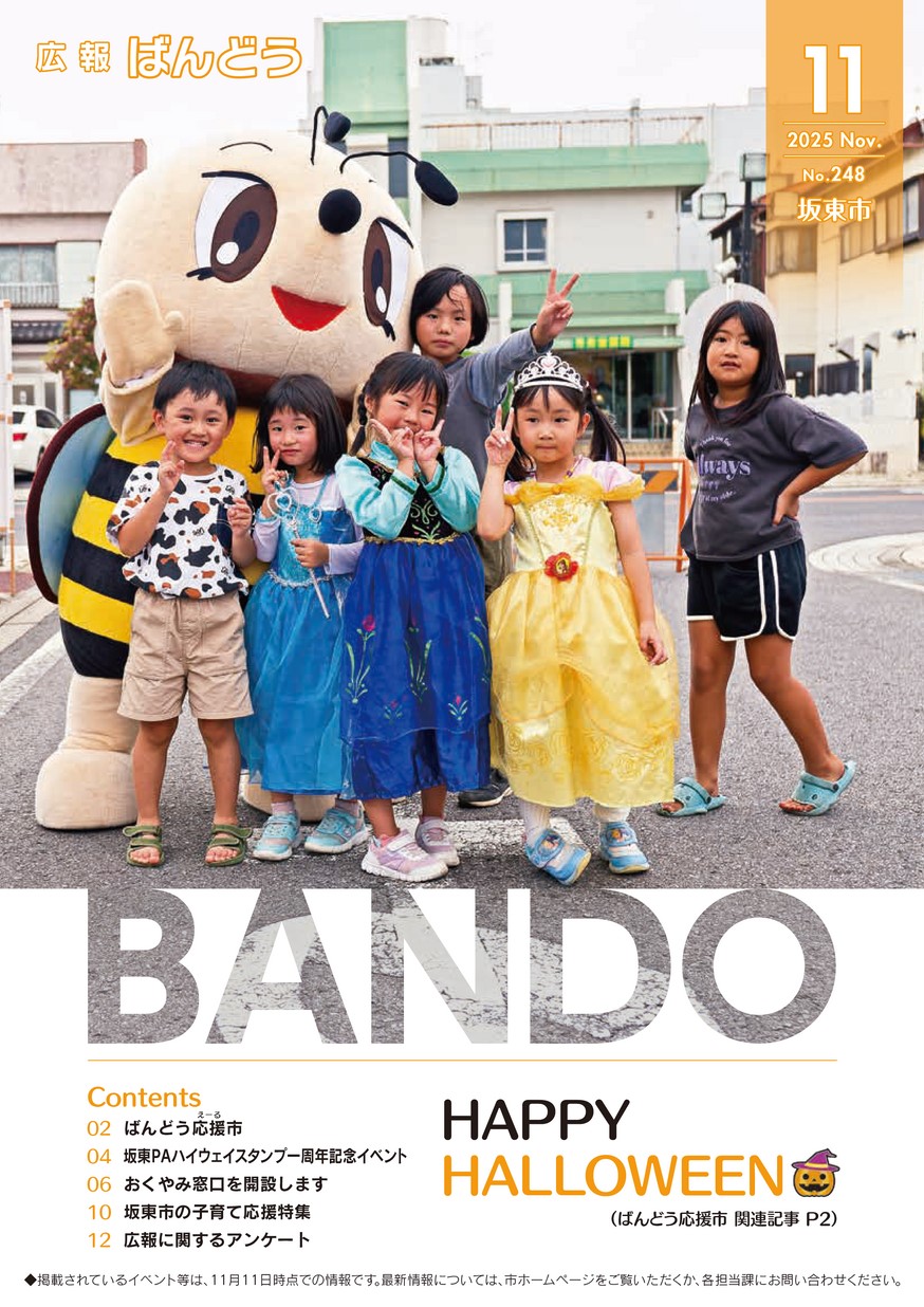 表紙 HAPPY HALLOWEEN 特集 坂東市の子育て応援 ・ばんどう応援市 ・坂東PAハイウェイ・オアシス一周年記念イ