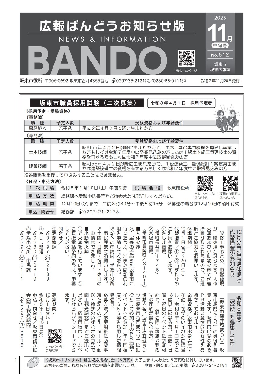 広報ばんどう お知らせ版 令和7年11月20日号 No.512
