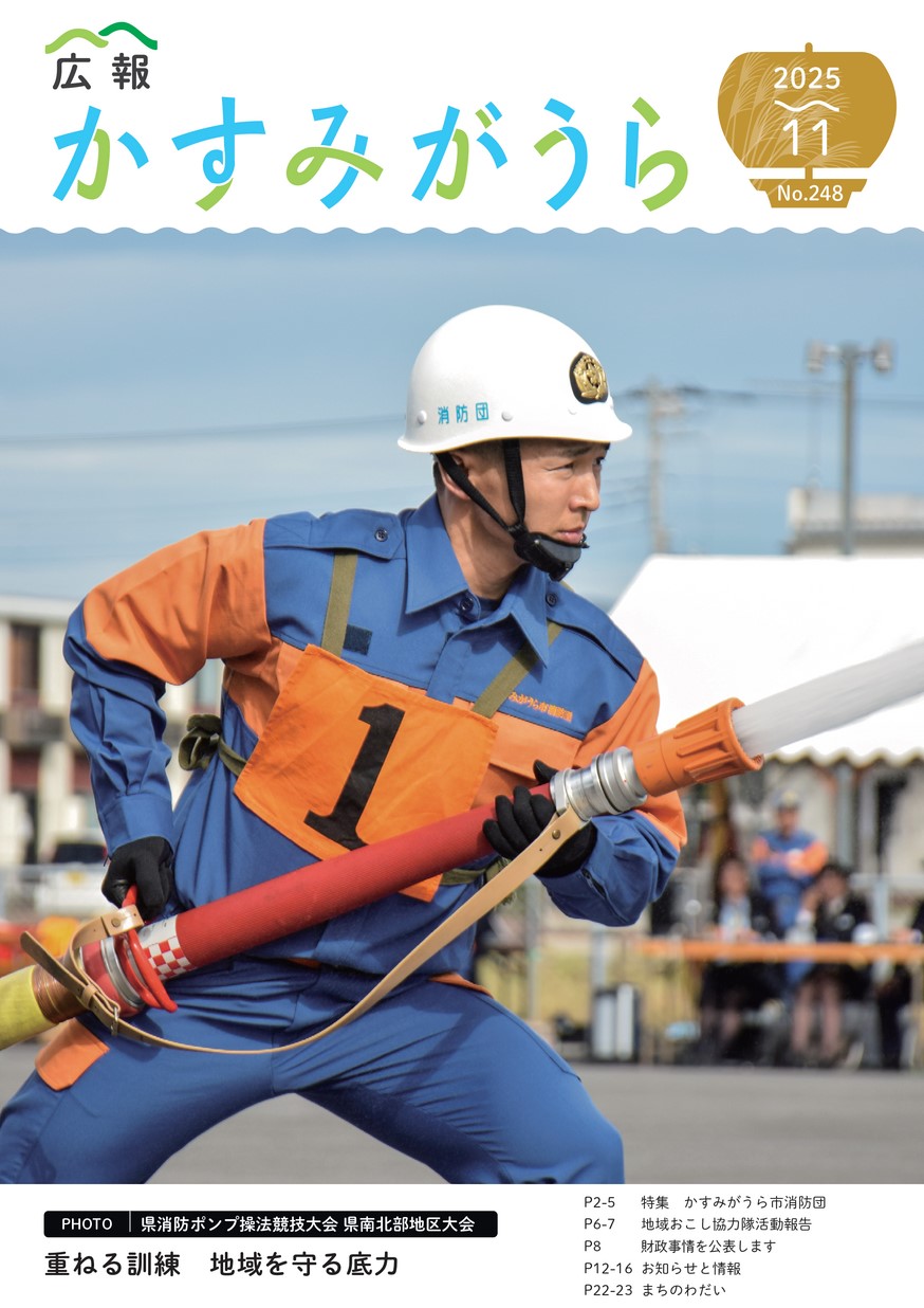 表紙 重ねる訓練 地域を守る底力 特集 かすみがうら市消防団 ・地域おこし協力隊活動報告 ・財政事情を公表します ・知って