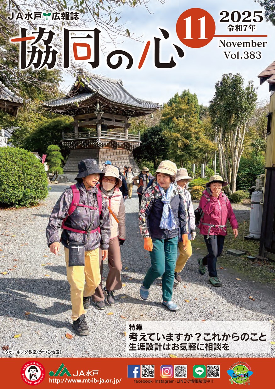 表紙 ウオーキング教室(かつら地区) 特集 考えていますか?これからのこと 生涯設計はお気軽に相談を ・オウエン Topics