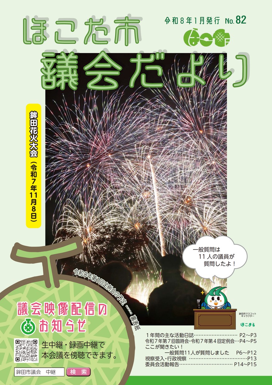 表紙 鉾田花火大会 特集 令和6年度決算 ・令和7年主な活動日誌 ・令和7年第7回臨時会・令和7年第4回定例会 ・ここが聞