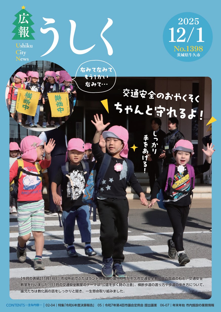 表紙 交通安全のおやくそく ちゃんと守れるよ! 特集 令和6年度決算報告 ・令和7年第4回市議会定例会 提出議案 ・年末年始