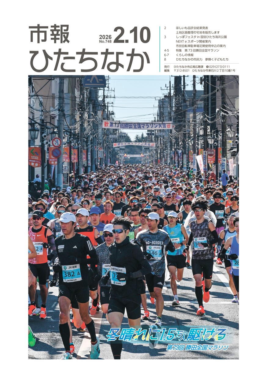 表紙 冬晴れに1.5万人駆ける 特集 第73回勝田全国マラソン ・ほしいも品評会結果発表 ・土地区画整理の宅地を販売します