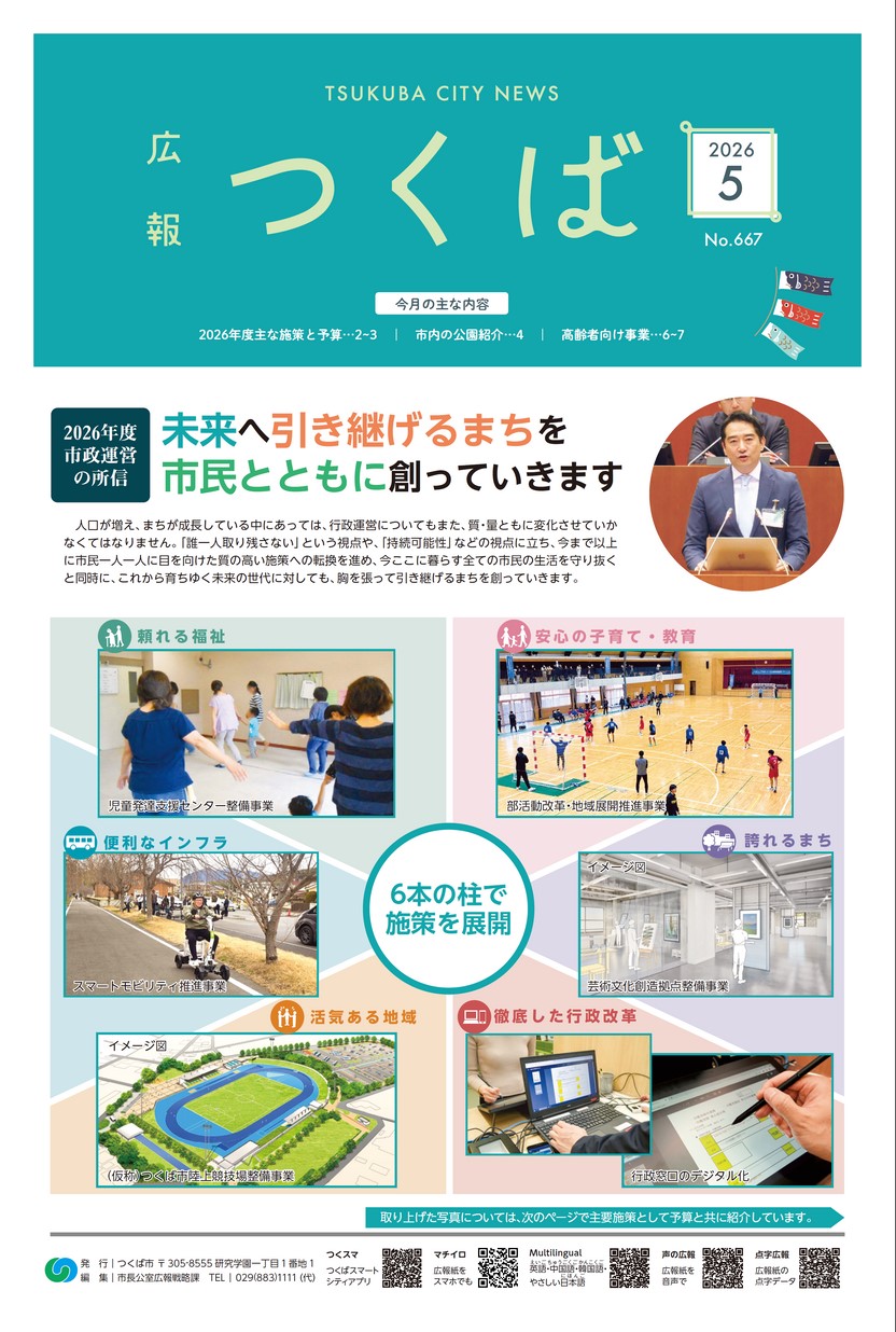 表紙 2026年度市政運営の所信 ・2026年度 主な取り組みと予算 ・「今日、公園行く?」 ・あなたの身近な相談相手 民生