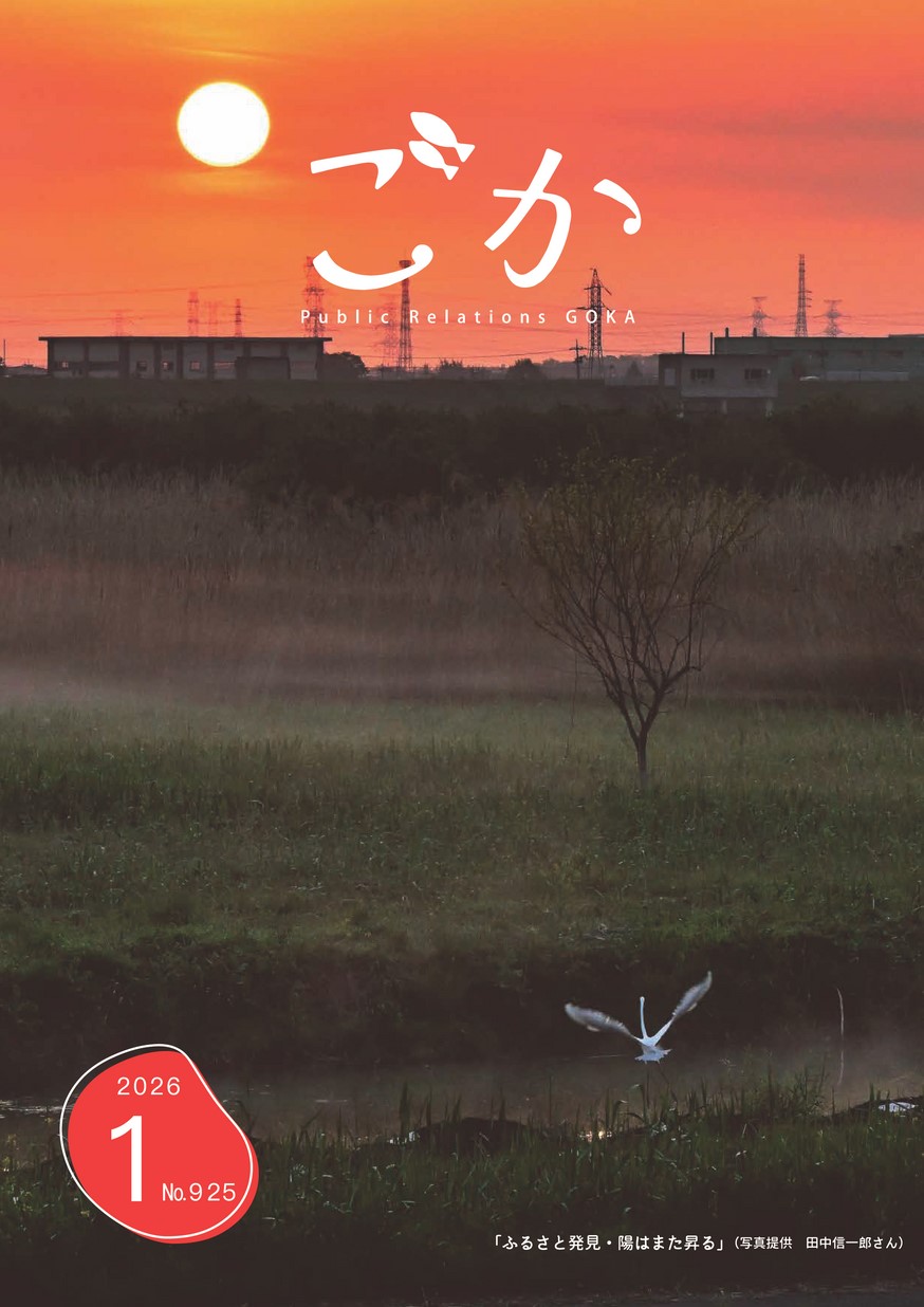 表紙 「ふるさと発見・陽はまた昇る」 ・年頭のごあいさつ ・広報ごか リニューアル! ・第31回 五霞町青少年の主張大会
