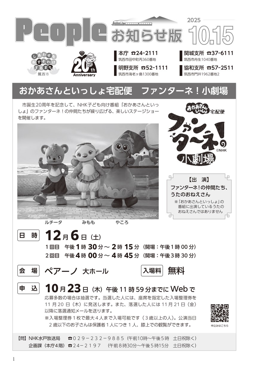 ・おかあさんといっしょ宅配便 ファンターネ!小劇場 ・案内 ・募集 ・イベント ・相談 ・10月の納付 ・健康 など
