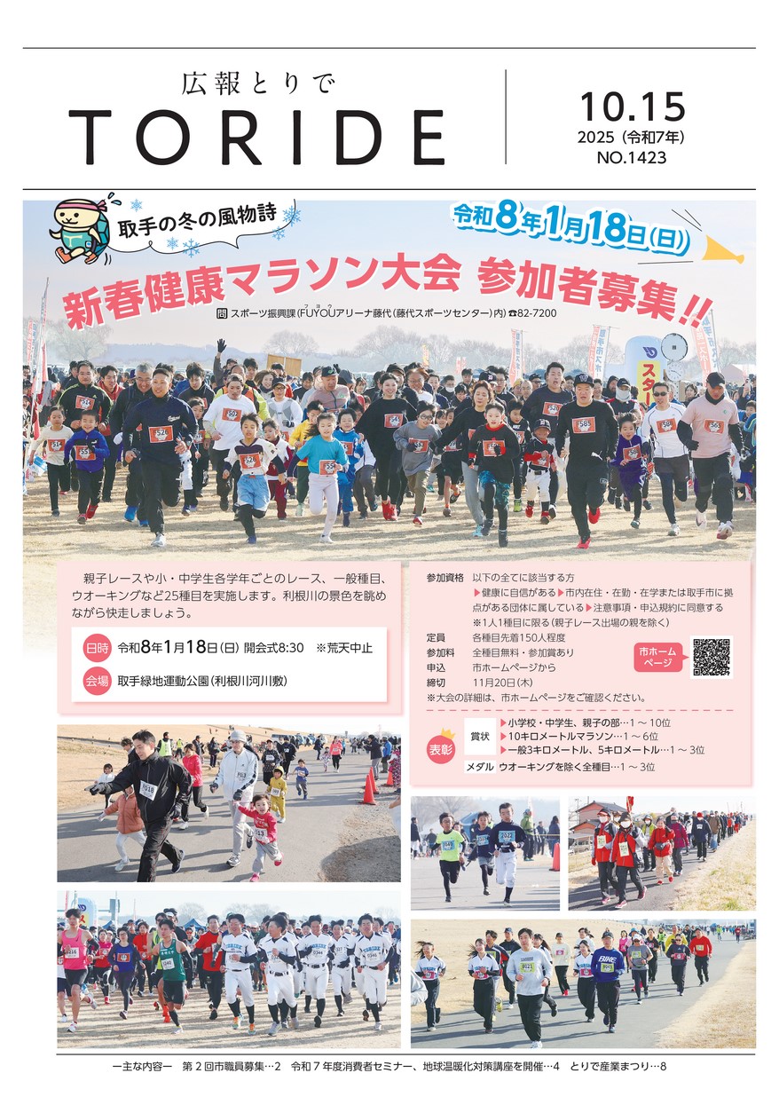 表紙 新春健康マラソン大会 参加者募集!! ・第2回 市職員募集 !! ・令和7年分 所得税、市・県民税申告の大切なお知らせ