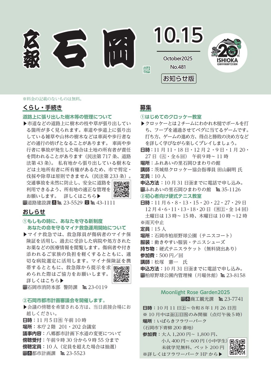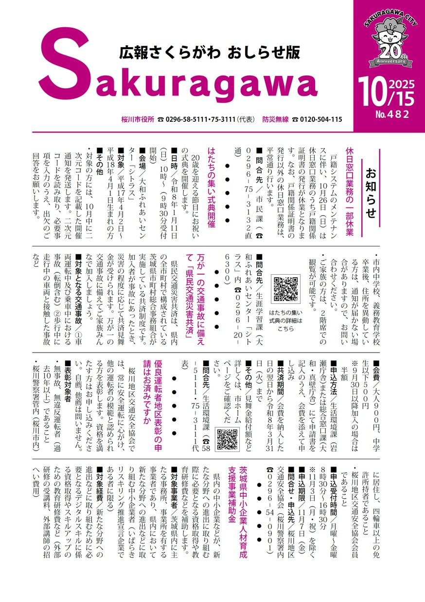 広報さくらがわ おしらせ版 2025年10月15日号 No.482