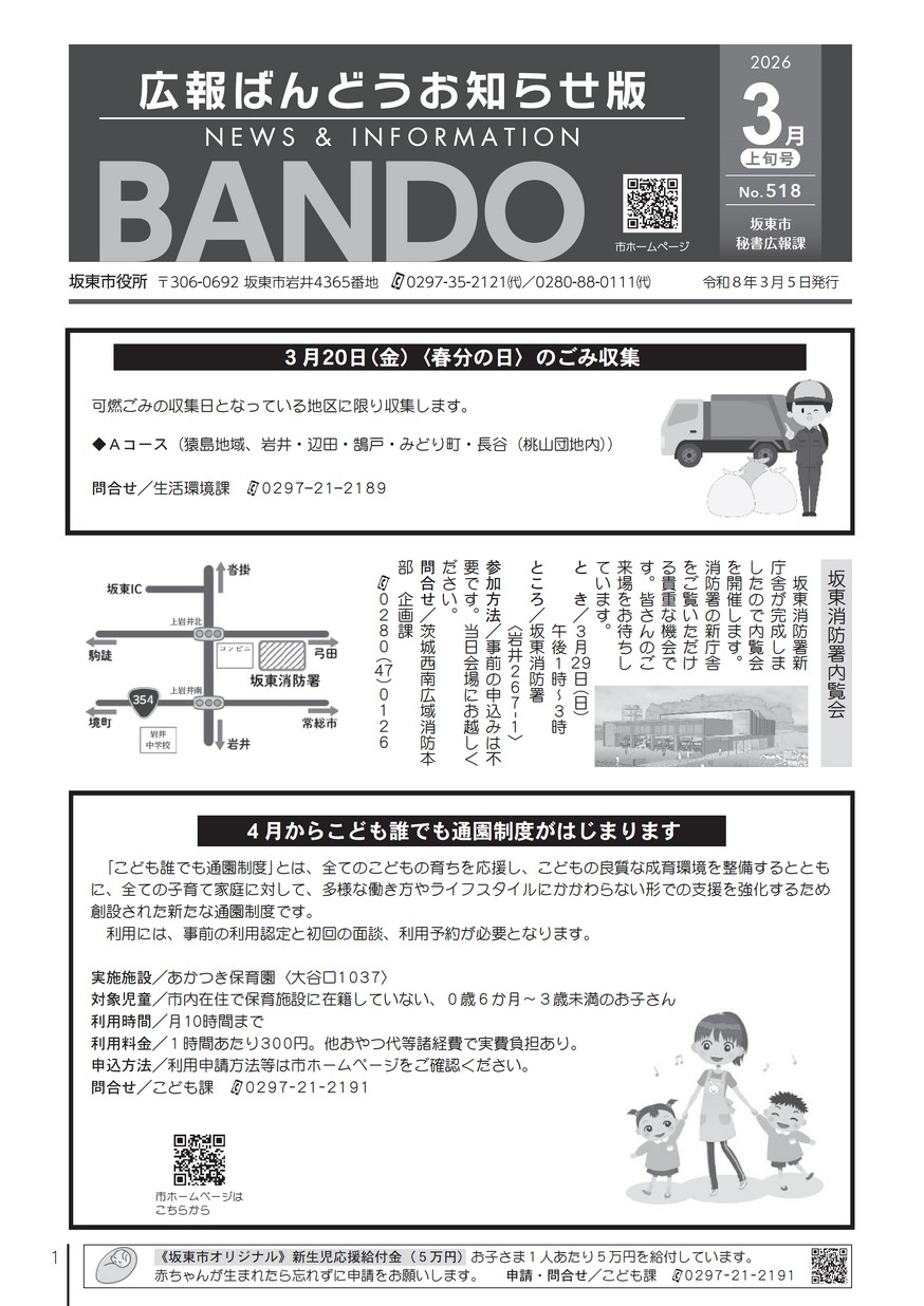 特集 茨城町二十歳のつどい式典 ・ふるさと地域づくりニュース ・霞台厚生施設組合からのお知らせ ・こども誰でも通園制度が始ま