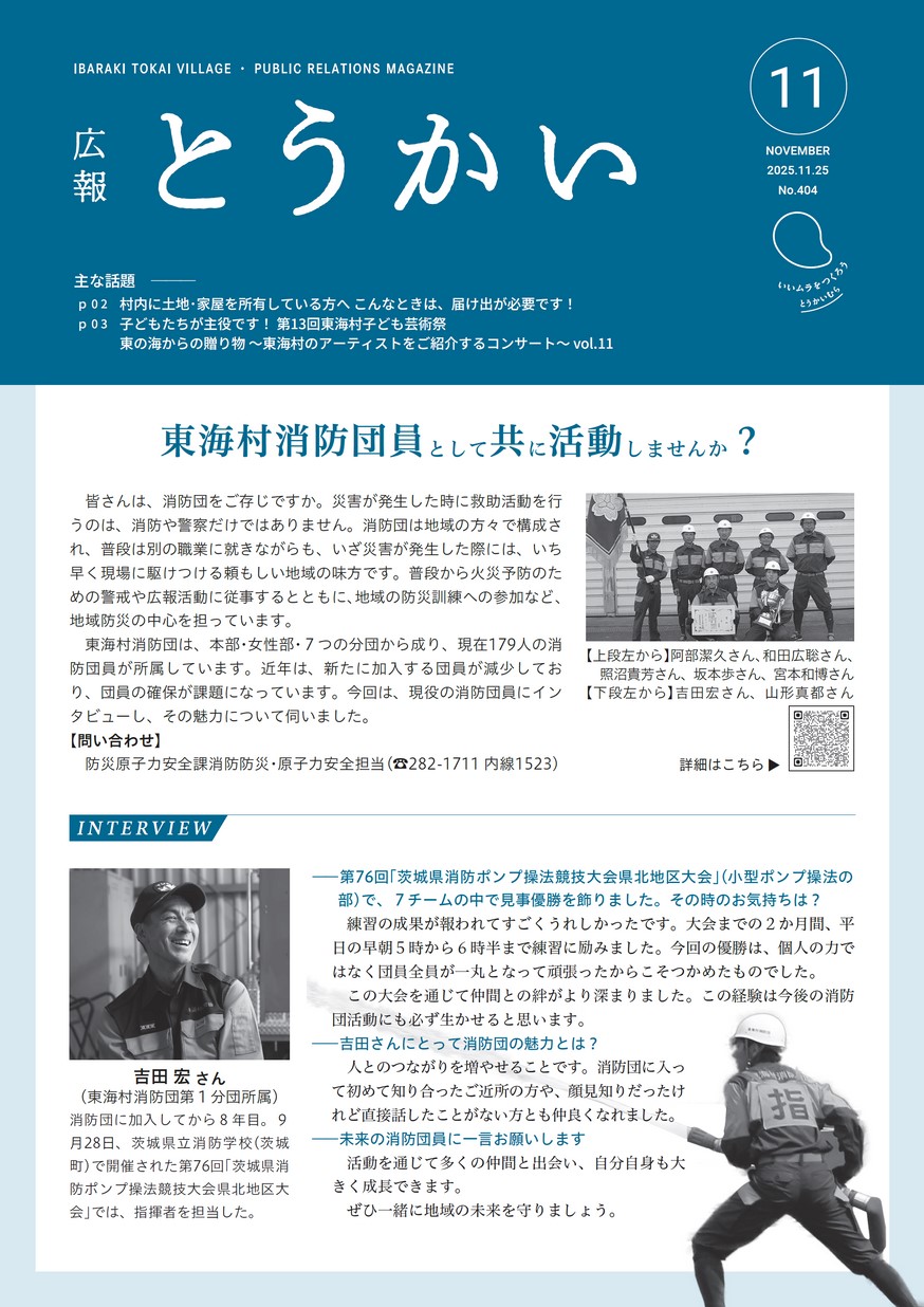 ・東海村消防団員として共に活動しませんか? ・こんなときは、届け出が必要です! ・第13回東海村子ども芸術祭 ・令和8年度会