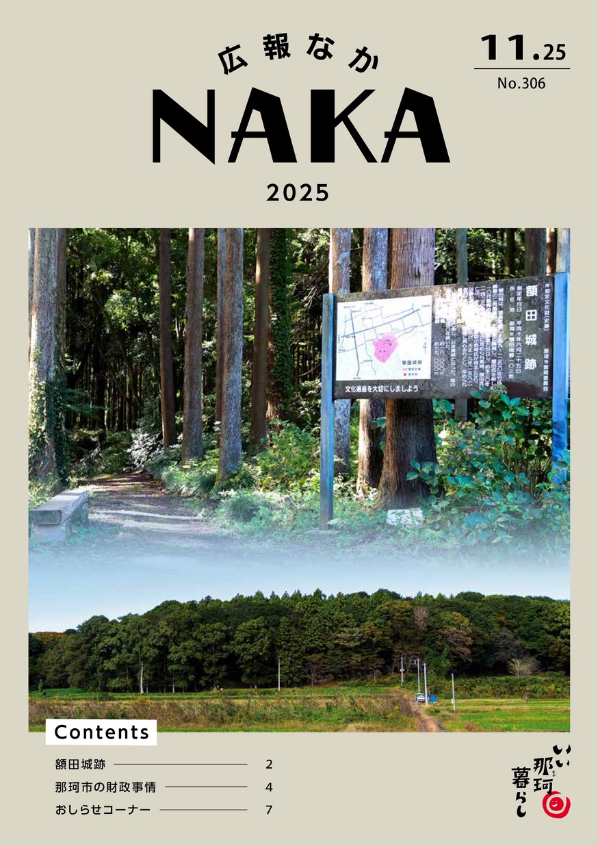 特集 額田城跡 ・那珂市の財政事情 ・障がいについて知ろう ・おしらせコーナー 相談 くらし 催し 募集