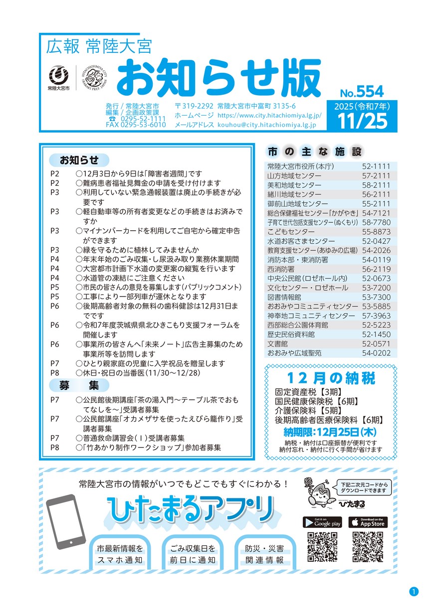 広報 常陸大宮 お知らせ版 2025年11月25日号 No.554