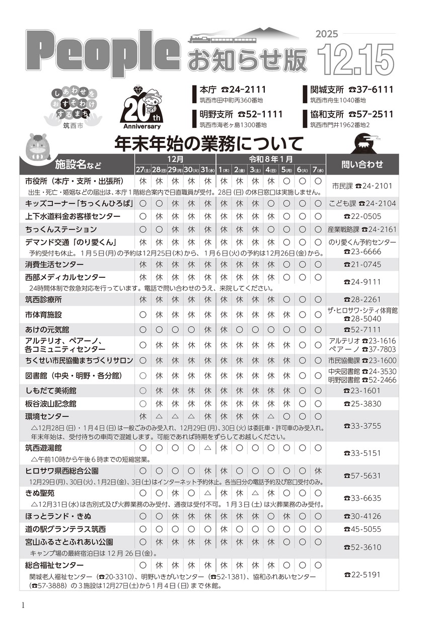 表紙 年末年始 公共施設などの休業・業務案内 ・市民意見公募(パブリックコメント) ・民生委員・児童委員、主任児童委員が変更に