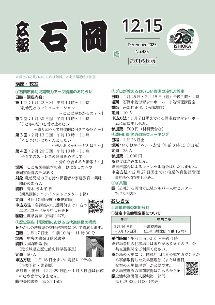 ・講座・教室 ・1月健康・相談カレンダー ・おしらせ ・イベント・催し ・相談 など 「広報いしおか 2025年1