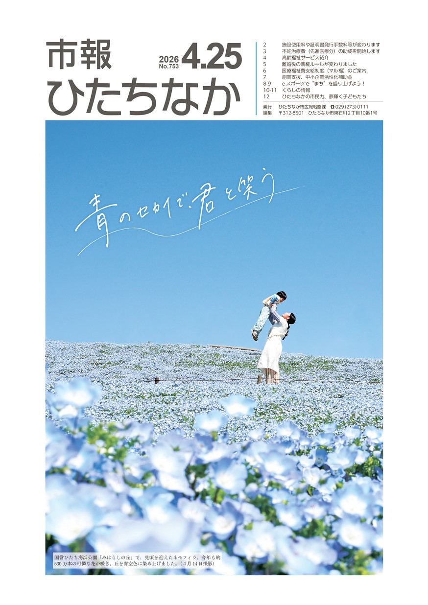 表紙 青のセカイで、君と笑う ・施設使用料や証明書発行手数料等が変わります ・不妊治療費(先進医療分)の助成を開始します ・