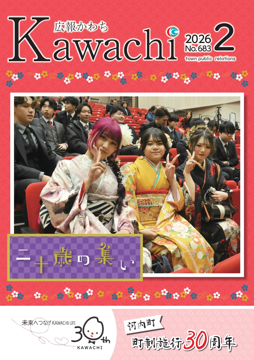 表紙 二十歳のつどい運営委員会の皆さん ・令和8年二十歳のつどい ・令和7年度3ヵ年事業実施計画 ・情報ひろば ・春は博物
