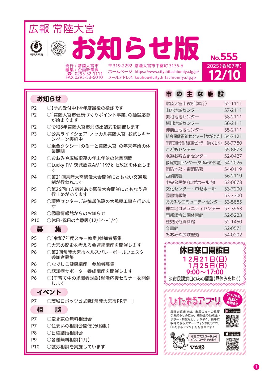 広報 常陸大宮 お知らせ版 2025年12月10日号 No.555