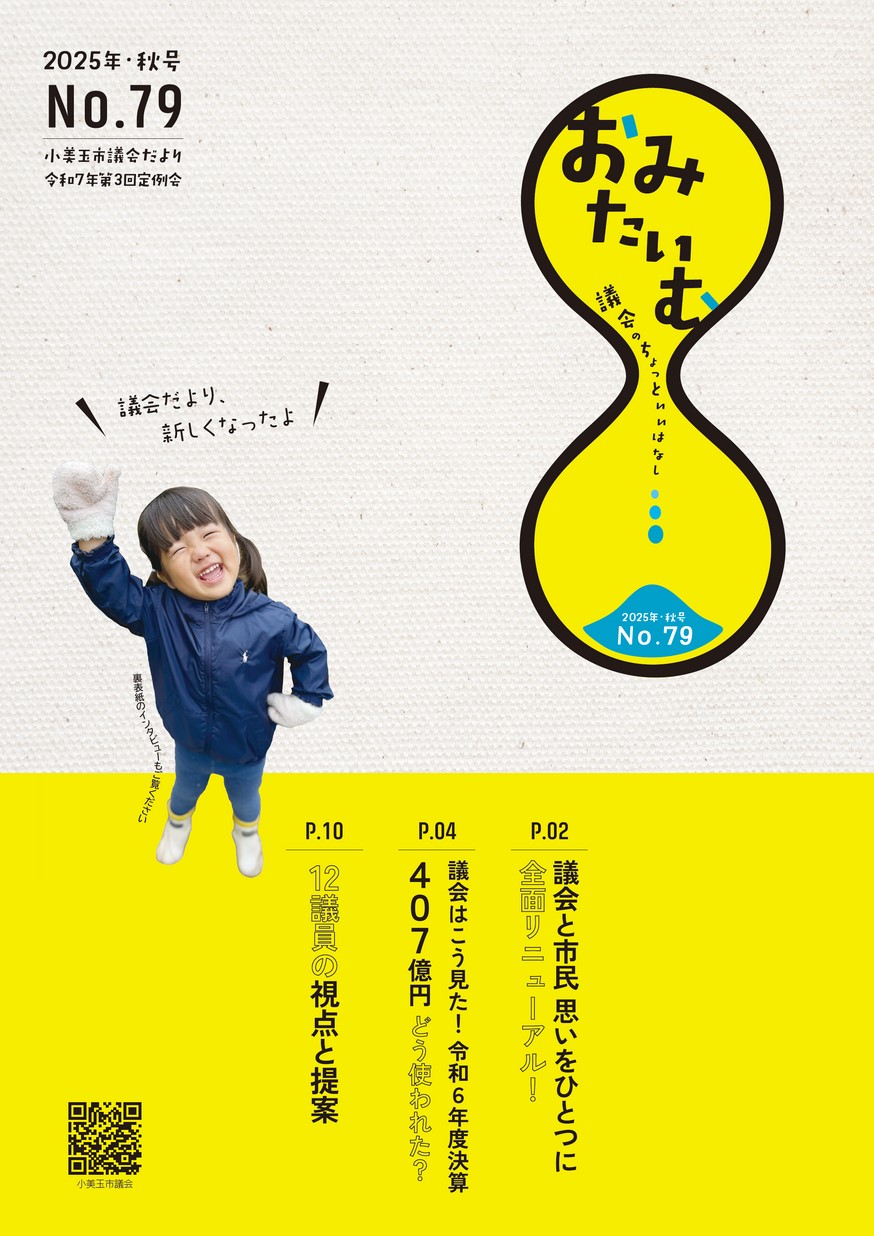表紙 議会だより、新しくなったよ ・議会と市民 思いをひとつに 全面リニューアル! ・令和6年度決算 ・ピックアップ 委