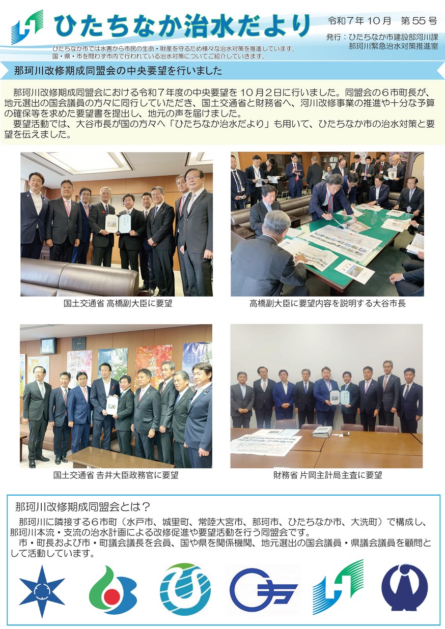 ・那珂川改修期成同盟会の中央要望を行いました ・河道掘削工事施工中(枝川地区) ~那珂川緊急治水対策プロジェクト~ ・中丸川調