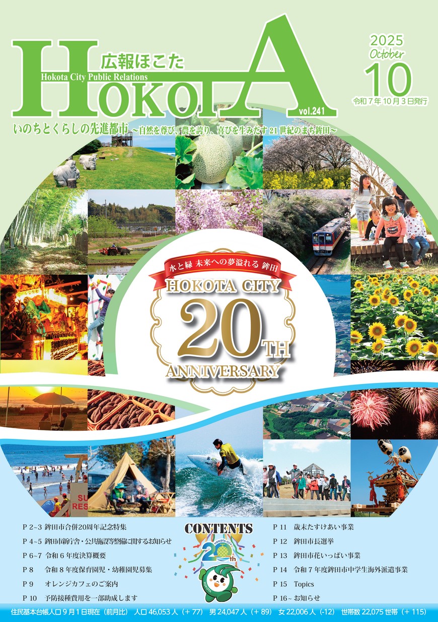 特集 鉾田市合併20周年記念 ・鉾田市新庁舎・公共施設等整備に関するお知らせ ・令和6年度決算概要 ・令和8年度保育園児・幼