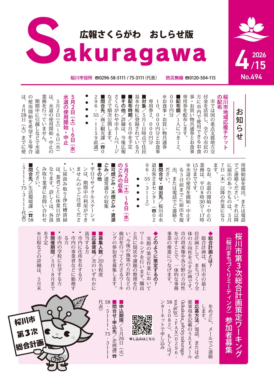 広報さくらがわ おしらせ版 2026年4月15日号 No.494