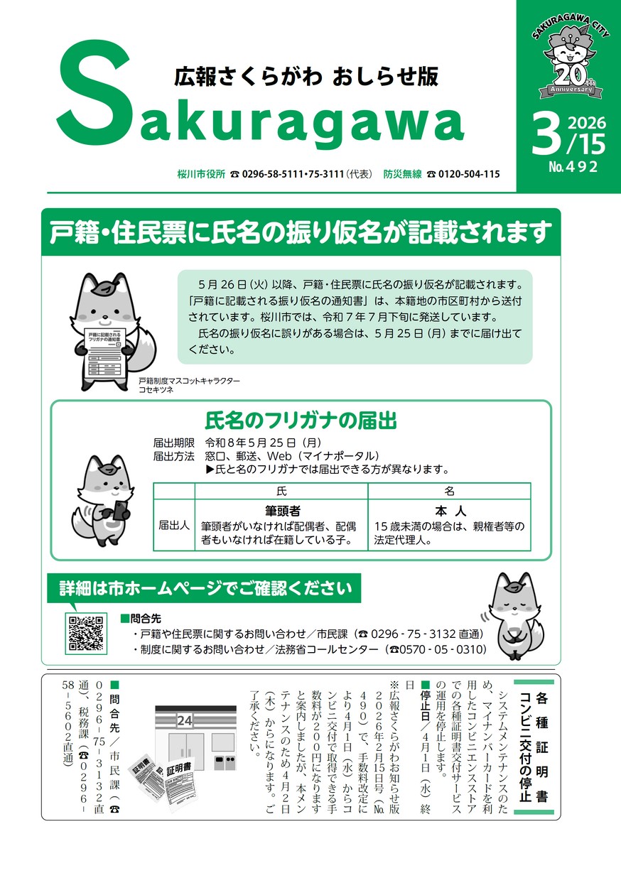 広報さくらがわ おしらせ版 2026年3月15日号 No.492