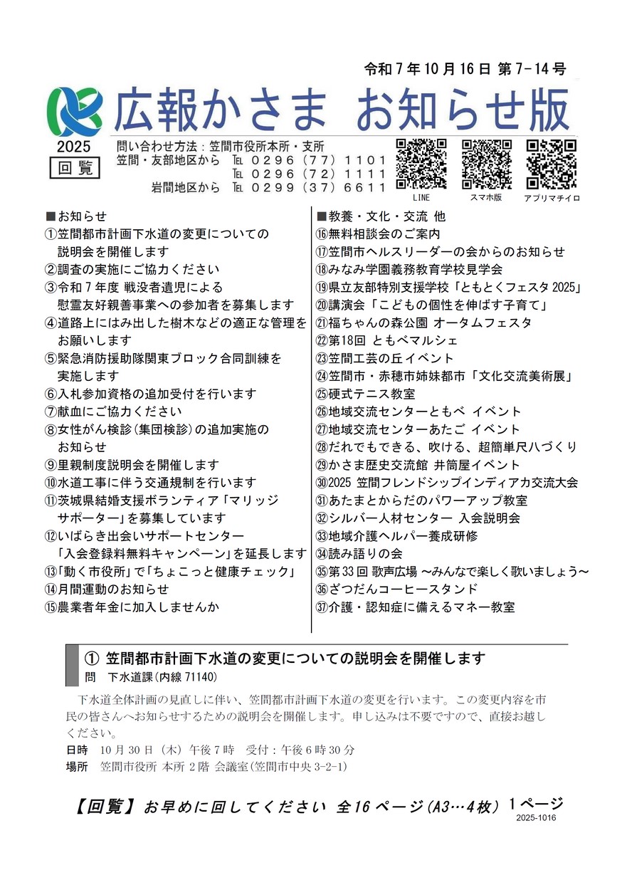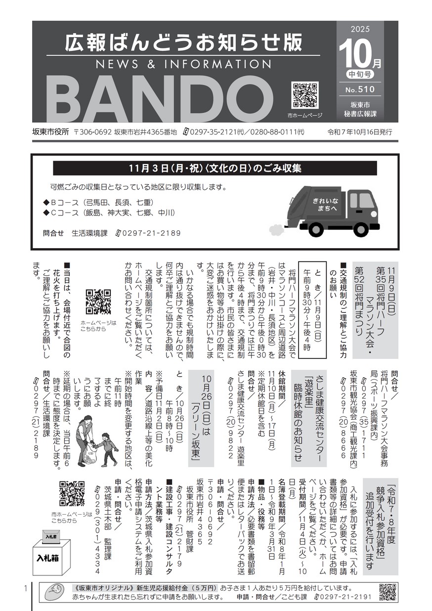 広報ばんどう お知らせ版 令和7年10月16日号 No.510