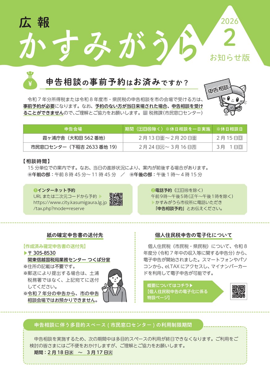 ・申告相談の事前予約はお済みですか? ・Information ~お知らせ~ くらしのお知らせ 募集のお知らせ 相談