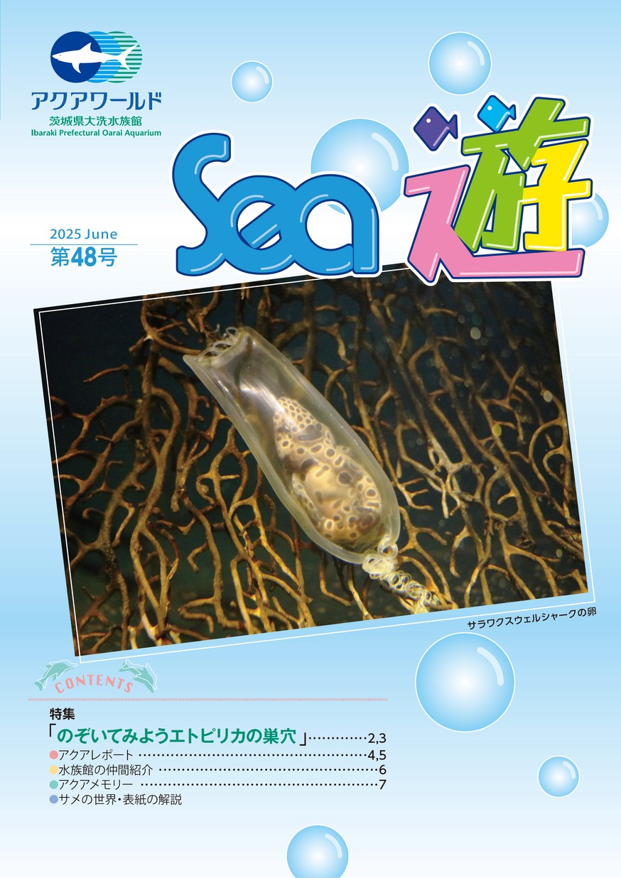 表紙 サラワクスウェルシャークの卵 特集 のぞいてみようエトピリカの巣穴 ・アクアレポート ・水族館の仲間紹介 ・アクアメ