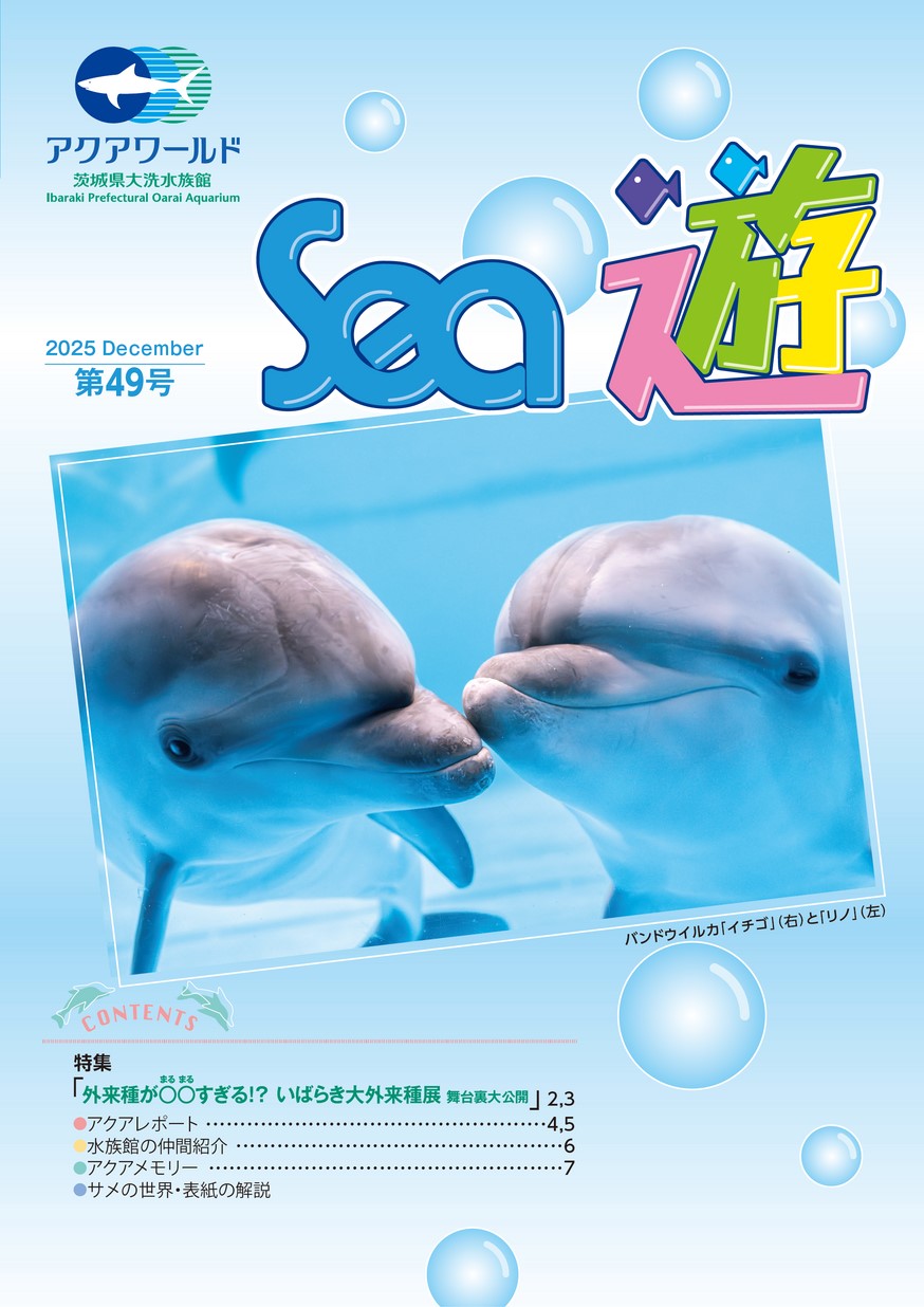 表紙 バンドウイルカ「イチゴ」(右)と「リノ」(左) 特集 の外来種が○○すぎる!? いばらき大外来種展 舞台裏大公開 ・アク