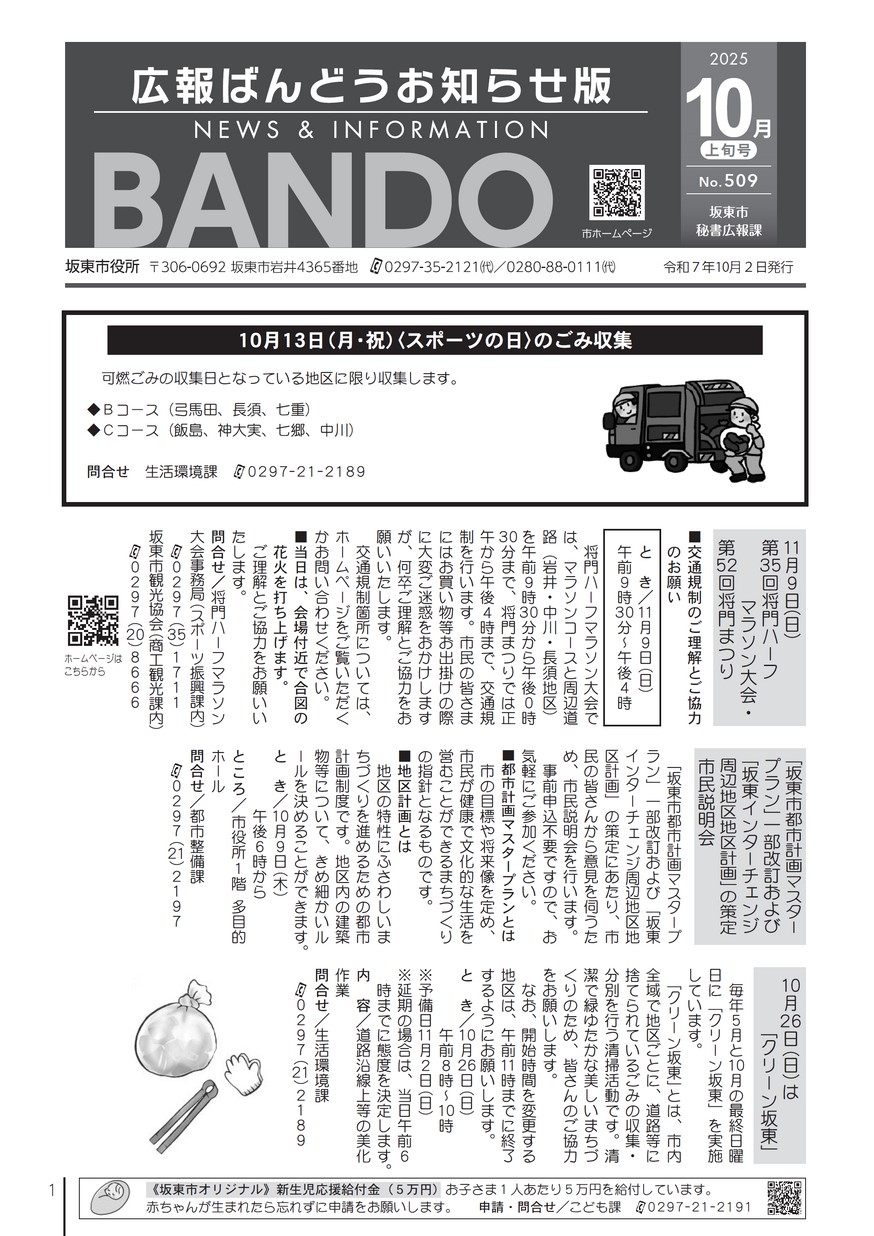 広報ばんどう お知らせ版 令和7年10月2日号 No.509