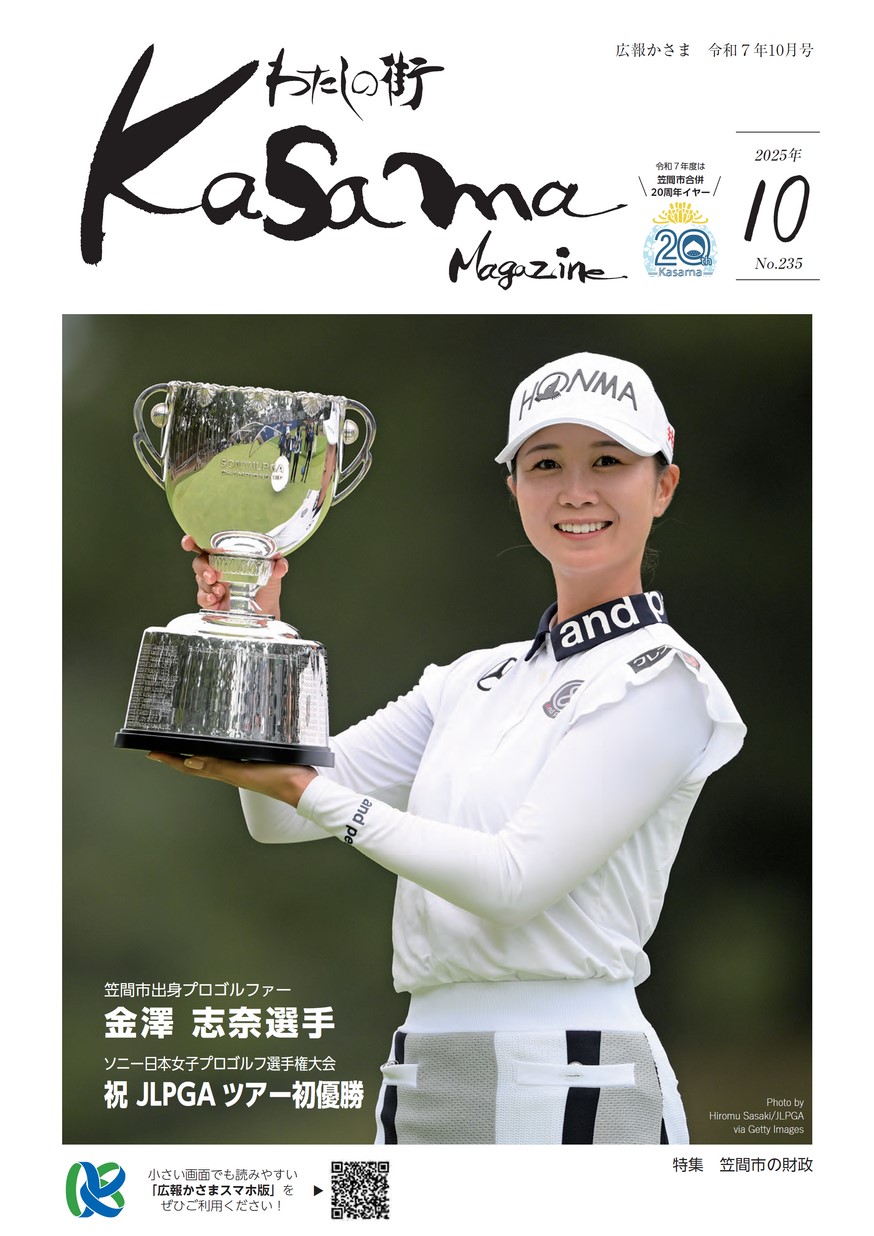 表紙 祝 JLPGA ツアー初優勝 金澤 志奈選手 特集 笠間市の財政 ・市長コラム ・まちおこしのスパイス ・からだと向