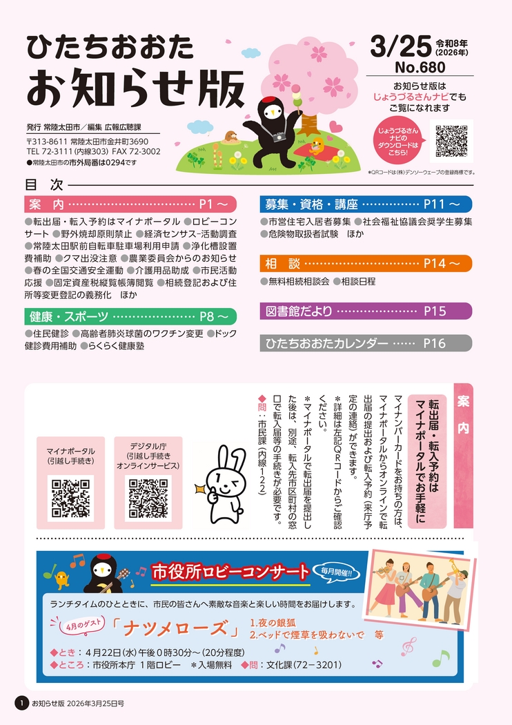 広報ひたちおおた お知らせ版 2026年3月25日号 No.680